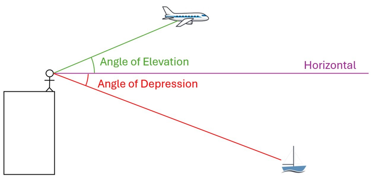 Angles of elevation and angles of depression are always measured to the horizontal.