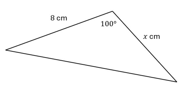 The area of the following triangle is \(40\) cm\(^{2}\). Determine the value of \(x\).
